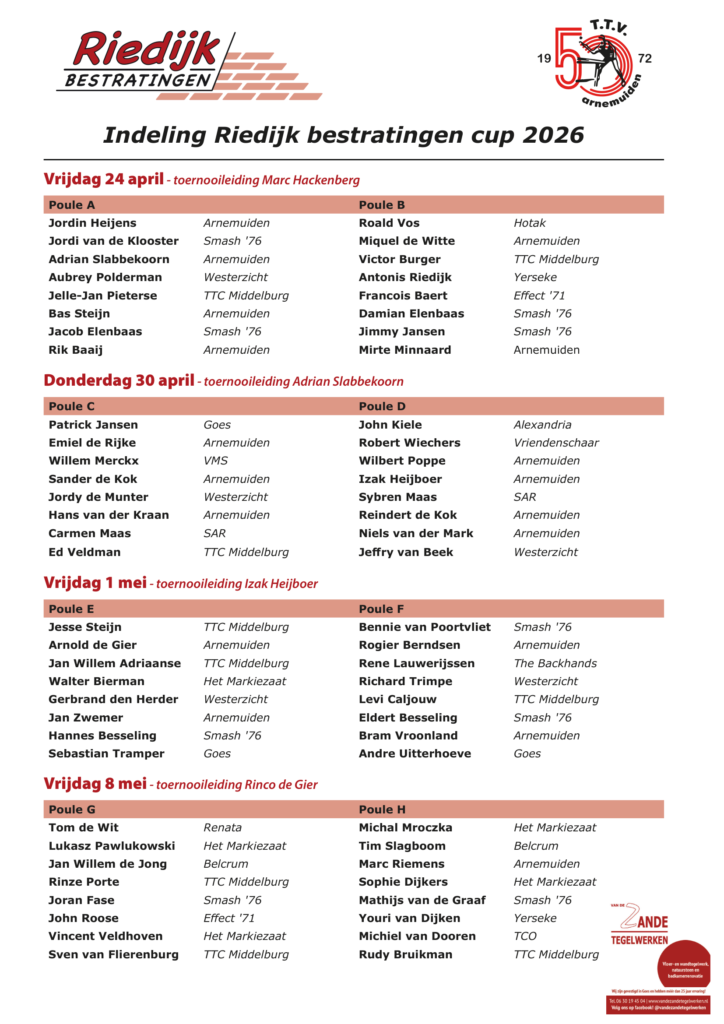 Door het jaar heen worden er allerlei toernooien en andere activiteiten georganiseerd buitenom het tafeltennis seizoen. Zo staat de vereniging niet alleen bekend om de sportieve prestaties maar ook zeker als gezelligheidsvereniging.